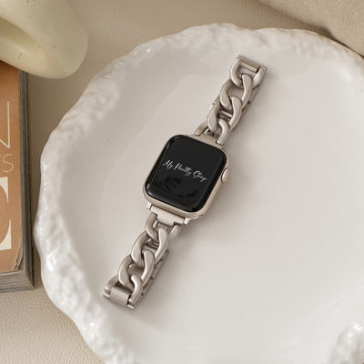 Crafted from premium stainless steel and twisted into elegant woven link chains, this watch band elevates your Apple Watch with its luxurious look & feel. Each watch band comes with its own metal adapter, designed to fit your Apple Watch seamlessly straight from the box.