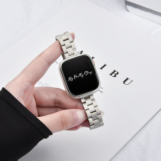 Crafted from premium stainless steel and twisted into elegant woven link chains, this watch band elevates your Apple Watch with its luxurious look & feel. Each watch band comes with its own metal adapter, designed to fit your Apple Watch seamlessly straight from the box.