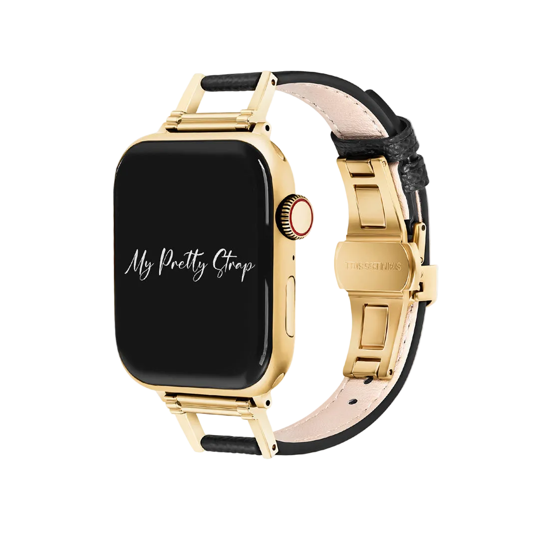 Introducing Bella Leather, the ultimate fusion of luxury and tradition in a woman's Apple Watch strap. This exquisite piece is where the timeless charm of leather meets the opulence of gold, crafting an accessory that's not just a watch strap, but a fashion statement.