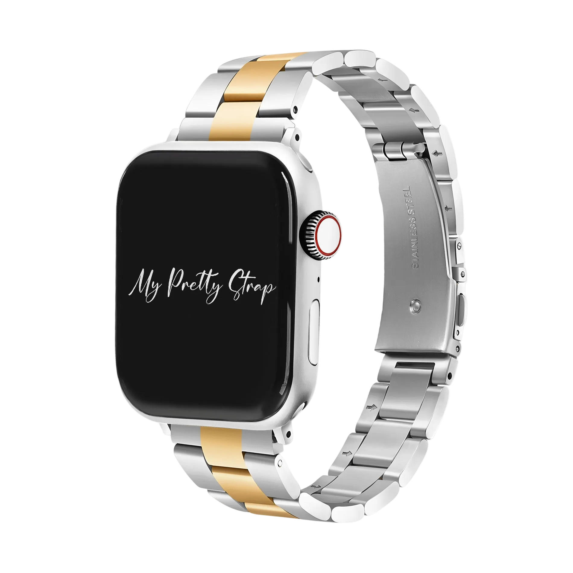 Crafted from premium stainless steel and twisted into elegant woven link chains, this watch band elevates your Apple Watch with its luxurious look & feel. Each watch band comes with its own metal adapter, designed to fit your Apple Watch seamlessly straight from the box.